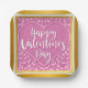 Modern Pink Rose Floral Heart Romantic Valentines Paper Plate