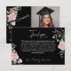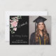 Modern Pink Roses Script Graduation Photo Thank You Card