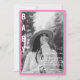 Bride Photo Baby Shower invitation. Simple. Minimalist. Modern. Black and White filter applied to photo. Rounded. Pink.
