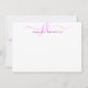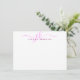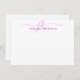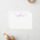 Personalised modern, minimalist note card with elegant calligraphy script initials or monogram and name in editable pink. CHANGES:  The text font style, colour, size and placement can be changed in EDIT for a custom look. ASSISTANCE:  For help with design modification or personalisation, colour change, resizing, transferring the design to another product or if you would like coordinating items, contact the designer BEFORE ORDERING via the Zazzle Chat MESSAGE tab below or email makeitaboutyoustore@gmail.com.