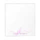 Personalised modern notepad with simple calligraphy style script initials or monogram and name in pink. CHANGES: The text font style, colour, size and placement can be changed by clicking on CUSTOMIZE FURTHER under the PERSONALIZE section for a custom look or by contacting the designer via Zazzle Chat or makeitaboutyoustore@gmail.com if you'd like this design modified, on another product or would like coordinating items.