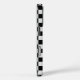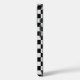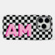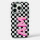 Modern Pink Shadow Monogrammed Personalised Vertical Big Initial Chequerboard iPhone 16 Pro Case - This trendy black and white chequered phone case has large pink vertical shadow monogram on the side which you can customise to make this phone case one of a kind.