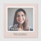 Spread the word and promote your social media presence with our follow me social media and photo magnet business card. The design features a large photo placeholder with a simple white curved frame. Light blush pink background adds a chic modern look, which you can change to any colour to match your brand colour. "follow me" displayed in a stylish white brush script. Personalise with the social media username/handle. Original Layout and design created by Moodthology.