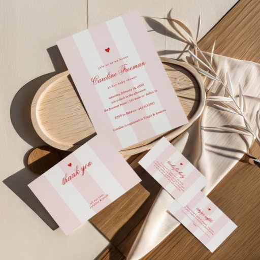 Celebrate love and sweet new beginnings with this Modern Pink Stripe Heart Valentine Baby Shower disposable napkin design, featuring soft pink stripes, charming heart accents, and a clean modern aesthetic perfect for a Valentine-themed baby shower.