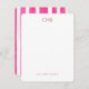 Stylish, modern personal stationery featuring a monogrammed initial at the top and a full name at the bottom in simple fonts with fun pink stripes on the back.