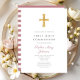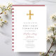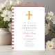 Modern Pink Stripes Cross Girl First Communion Invitation