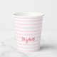 Modern Pink Stripes Elegant Monogrammed Typography Paper Cups