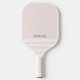 Modern pink stripes pickleball paddle that is personalised with your name.