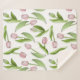 The product design features a pattern of pink tulip flowers. This botanical illustration makes a modern chic and unique Sherpa blanket.