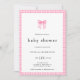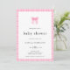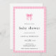 Modern Pink Watercolor Bow Gingham Baby Shower Invitation