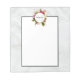 A notepad with a pretty watercolor design. A floral arrangement of many different varieties of flowers in red, pink and white colours, and lots of leafy green foliage. A frame layered over top with a faux-gold-foil border. Classy and elegant design. An off-white marble pattern background. Personalise with a single monogram letter and name.