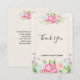 Flat thank You card with a pretty watercolor design. Pink flowers arranged in a beautiful bouquet.