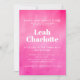 This design sets a confident, joyful tone for a modern Bat Mitzvah celebration. The vibrant pink color and clean typography feel elevated and meaningful while keeping the focus on the guest of honor. A beautiful choice for families who want something polished, current, and easy to coordinate with the rest of their event details.