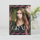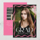 Celebrate your high school or college graduate with this elegant graduation announcement, featuring a full-bleed vertical photo framed by a stylish pink wavy border. "Grad" is displayed in bold white lettering making a statement, while the graduate’s name, school, and class year add a personal touch. The back includes a horizontal photo with space for a custom message, making it the perfect way to share this special milestone with family and friends.