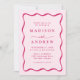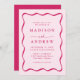 Modern Pink Wavy Frame Photo Wedding Invitation