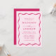 Introducing our enchanting Modern Pink Wavy Frame photo wedding invitation, where boho meets retro in a harmonious celebration of love! With dark pink lettering dancing across the light pink invitation, adorned with a wavy frame reminiscent of vintage charm, this whimsical design sets the perfect tone for your special day. Personalised with the couple's names and wedding details, each element exudes an air of nostalgia and modern elegance. The invitation reverses to display your vertical engagement photo with your wedding website shown below. Embrace the enchantment of your union with this unique invitation, inviting your guests to join in the joy of your boho-retro love story.