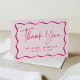 Modern Pink Wavy Frame Photo Wedding Thank You