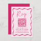 Modern Pink Wavy Frame QR Code Wedding RSVP Enclosure Card