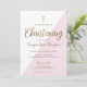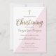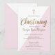 Modern Pink White Gold Christening baby Girl Invitation