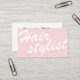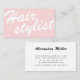 Modern pink white minimal bold script hairstylist business card. Easy to customise with your own contact information on the front and back side.
