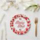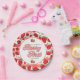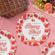 Modern Pink White Strawberry Birthday Berry First Paper Plate