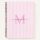 Modern Pink & White Stripes Monogram Name Notebook