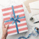 Pink and white striped gift wrapping paper. This paper colour matches other gift-wrapping supplies in-store at Amore Amore. Modern Pink White Stripes Wrapping Paper. Colour code #F68784