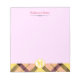 Girly, modern and trendy customisable notepad features "personalised name's notes" at the top and pink-yellow plaid tartan at the bottom on pink background.