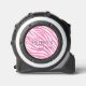 Modern personalised tape measure featuring your name and custom subtitle on a pink zebra pattern background.
