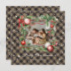 Elegant plaid photo Christmas card featuring a photo inside a watercolor Christmas wreath of spruce branches, holly and Christmas decoration. Easily personalise this buffalo plaid photo Christmas card with your photo and text.