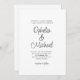 Project a sense of modern simplicity with this stylish simple wedding invitation design. The bride and groom's names are featured in a casual modern calligraphy script paired with a simple italicised type face giving the details of your special day. The result is a tasteful minimalist look with modern flair. Personalise the text with your details in the easy-to-use text template. After replacing the sample names with your names, you may need to re-centre the names to your liking. You can do this by scrolling down to the bottom of the design template and selecting "click to customise further". This will open the design template and allow you to click and drag your text to re-centre if necessary.