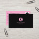 Modern Plain Black Pink with Monogram and Photo Business Card