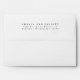 Simple basic 5x7 envelope with return address in a serif font. This 3-line layout is centred on the he back flap with capitalised first names and proper case for the address. Standard sizes and colours available.