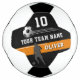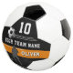 Modern Player Name Number Team Soccer Ball. Sleek soccer, football design! Featuring black and orange colour scheme, bold lettering, realistic soccer graphics, this sporty design is perfect for any soccer fan. The design showcases dynamic player silhouettes, a soccer image and stripe details. Add your player's name, number and team name.