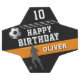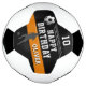 Modern Player Silhouette Happy Birthday Soccer Ball. Celebrate in style with this sleek soccer, football design! Featuring black and orange colour scheme, bold lettering, realistic soccer graphics, this sporty design is perfect for any soccer fan. The design showcases dynamic player silhouettes, a soccer image and stripe details. Whether for a kid or an adult soccer lover, this premium and customisable design is a home run for any birthday celebration!