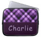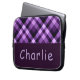 Modern Plum Purple Plaid Monogram Laptop Sleeve