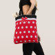 Elegant silver polka dots with red ribbon on red background with black header Tote bag.