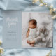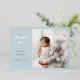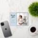 Celebrate your baby boy’s arrival with this modern powder blue birth announcement featuring silver foil accents. Designed with a soft, neutral background and elegant script, this card showcases four of your favorite newborn photos for a personal and memorable touch. The silver foil highlights add a sophisticated shimmer, perfect for parents who love timeless yet contemporary stationery.