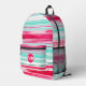 Modern Preppy Cyan Magenta Watercolor Stripe Pattern Monogram Personalised Name Backpacks features your personalised name, monogram or initals in a simple script typography on a modern cyan and mageneta watercolor stripe background. Perfect for back to school, sports, gym and more. Designed by ©Evco Studio www.zazzle.com/store/evcostudio