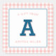 A colourful, preppy monogram gift tag with a peachy pink gingham pattern is perfect for any occasion.