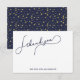 Simple and modern pretty script midnight blue with faux gold dots thank you note card.