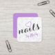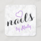 Modern pretty white marble purple black nails square business card