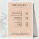 Modern, price list poster. Edit your product in a few minutes by adding your data. You can change the font/colour/position by "further personalisation".
