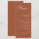 This terracotta burnt orange fall wedding reception menu is perfect for a bohemian style wedding. This trending colour palette is perfect for a late summer or autumn wedding. Make this menu your own by including all of the wedding reception menu details. Have them printed or choose a digital download to print yourself.