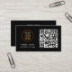 Create a sleek and professional impression with our black modern QR code business logo on a minimalist business card. This customisable template allows you to easily update with your QR code, company logo, and contact information, making it perfect for any corporate setting.