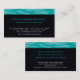 This elegant business card shows your informations in a clean and professional looking way using a white font on a black coloured background. The lines containing the name and basic business information are highlighted by using a turquoise / teal colour. This colour can be changed into white or any other light colour by customising the card and using Zazzles colour picker. An elegant head design with turquoise / teal coloured stripe effects gives this classic card it's unique and fresh touch. This design is suitable for all purposes. Business cards are in general a great marketing tool for business and small business owners to promote their services or products in many fields of activity like education, consulting / consultant, finance, financial service, insurance, real estate, health, beauty, fitness, spa, day spa, manicure, pedicure, nail design, make up artist, lifestyle, car dealer, IT, computers and many more. Customise the text on the backside of the card to tell customers and business partners about your service or products or delete text fields you don't need. Change text colour, size or font style or add own pictures and logos to customise this design even more. If this business card is intended for private use you may not want to give away too many informations to protect your security. In this case you can use the front of the card for printing your name and email information on it and write your phone number on the back of the card when you hand it out. You can also remove the black background picture and choose Zazzles custom colour picker to choose your own colours or leave the background white. Show your professionalism to customers and friends and make a lasting impression by choosing Zazzles professional business card prints.
