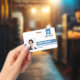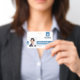 A modern staff ID badge with a professional layout, ideal as employee ID and office worker identification. The design includes an employee photo, as well as the employees name, job title and employee ID number. Furthermore it features a space in the upper right area of the badge to add your business logo and company name.