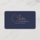 modern, elegant, professional and plain navy blue and golden business card features script first name, last name and career in a professional text in front and full details in back, suitable for any profession, art director, copywriter, interior designs, lawyer, attorney, teacher, dentist, doctors, writer, makeup artist, hair stylist, etc.