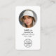 Impress with a stylish and professional business card. This double-sided template features your photo in a circle, and is personalised with a name, logo, contact information, and a scannable QR code. Customise the text to match your brand. This modern design would suit many different professions, including fashion stylists, beauty consultants, photographers, boutique owners, makeup artists, influencers and more! Printed colours: black and white.