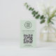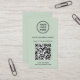 Professional sage green business card for your company that features your QR code for customers to scan for a list of your products, services, prices or other information. Upload your logo and QR code and add your business name, website, slogan, phone number, street address, etc. in simple modern typography.